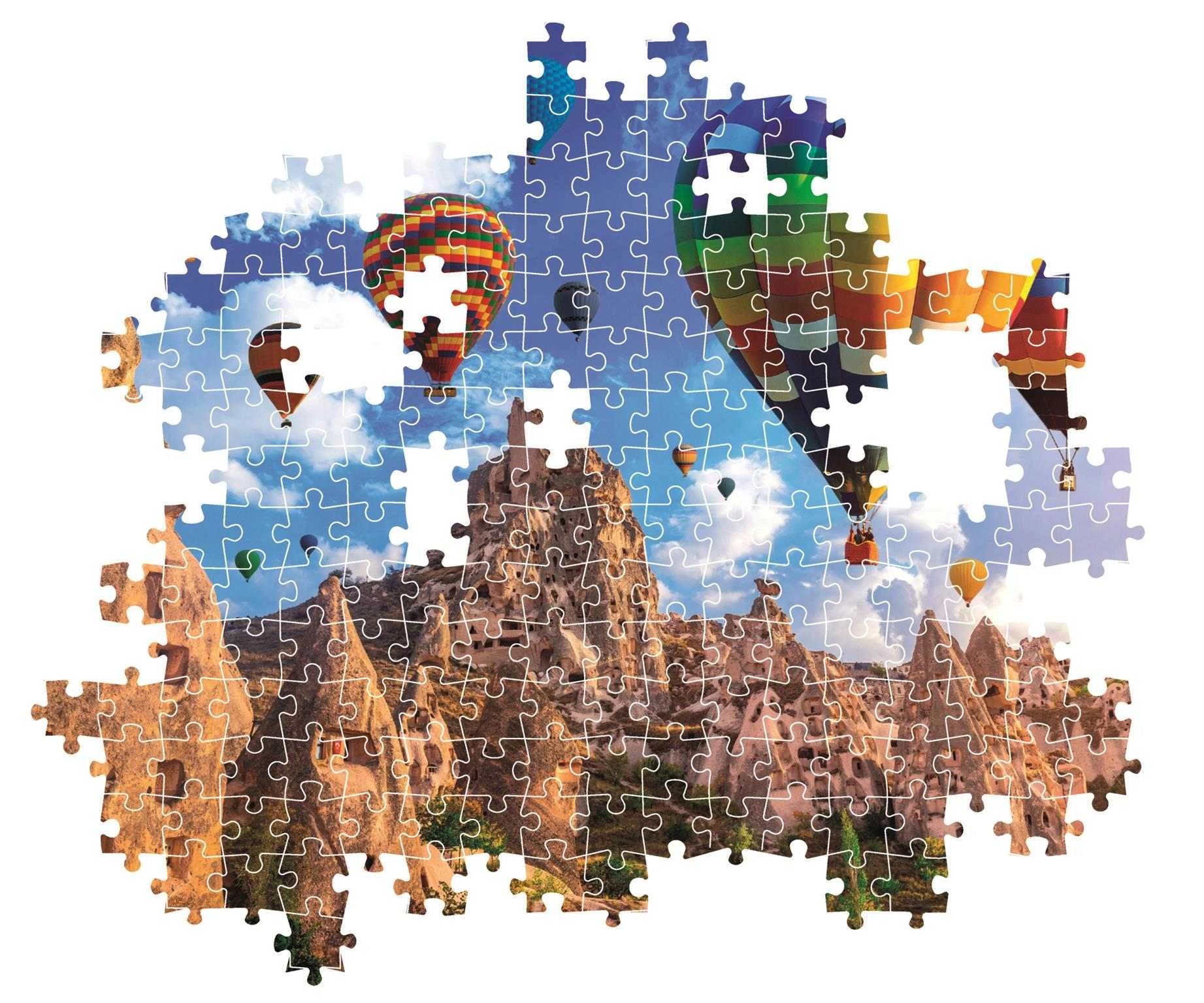 Uživajte v čudovitih krajinah s sestavljanko Clementoni in ustvarite svojo podobo balonov nad slikovito Kapadokijo. Ta sestavljanka s 1000 kosi ne nudi le vizualnega užitka, temveč tudi trening vaše fine motorike in koncentracije.
