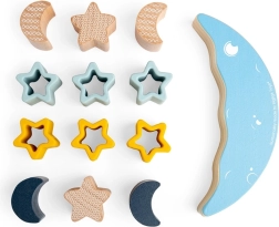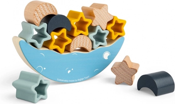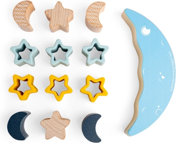 Gibalna igra Uravnoteženi luna je zasnovana tako, da spodbuja razvoj fine motorike in domišljije pri otrocih. Leseni deli v obliki zvezd in polmeseca niso le zabavni za zlaganje, temveč tudi izboljšujejo koordinacijo oči in rok. Uporaba trajnostnih materialov naredi to igračo ne samo varno, temveč tudi ekološko.