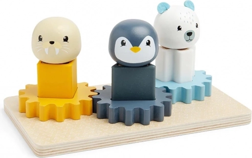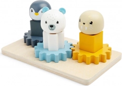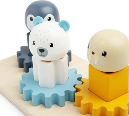 Vključuje pingvina, mroža in polarnega medveda, ki jih otroci lahko postavljajo na različne barvne podstavke in jih obračajo.