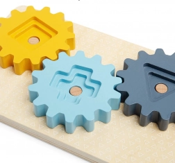 Ta igračka spodbuja otrokov kognitivni razvoj s podporo reševanju problemov, logičnemu razmišljanju in prepoznavanju oblik. Lesena motorična plošča je primerna za otroke od 12 mesecev dalje in ponuja varno in zabavno okolje za njihovo igro.