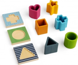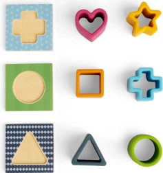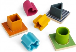 Vsebuje silikonske oblike in lesene podlage, ki omogočajo različne scenarije igre in spodbujajo ustvarjalnost.