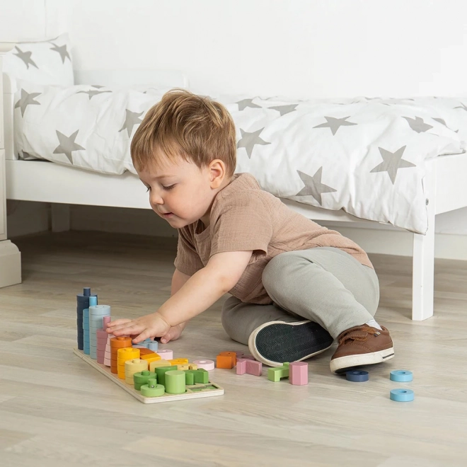 Ta lesena računalniška plošča je odlična igrača za majhne otroke, ki jim pomaga pri razvoju kognitivnih sposobnosti, fine motorike in koordinacije roka-oko. Vsebuje 78 delov, vključno s številčnimi in oblikovnimi sestavljankami, ki otroke motivirajo k učenju skozi igro.