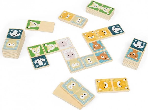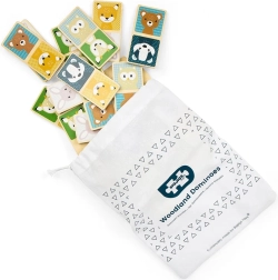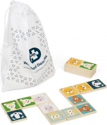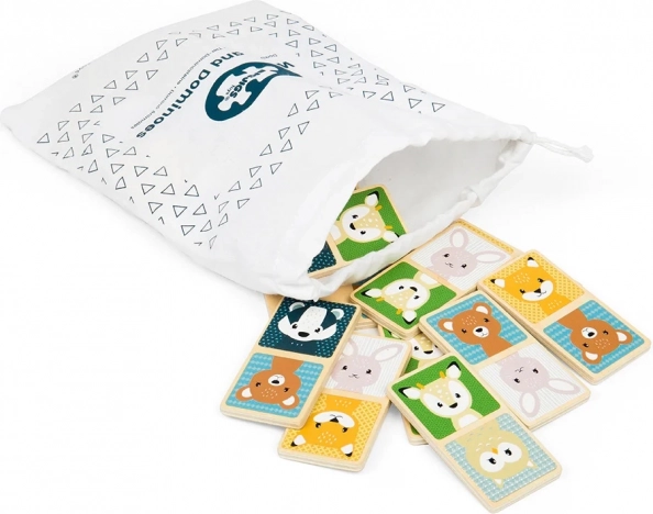 Odpeljite otroke v svet živali z lesenim dominom Lesne živalce. Vsak izmed 28 kosov je okrašen z barvitimi slikami živali in vsi kosi se udobno prilegajo v majhne otroške roke.