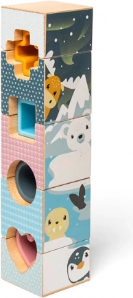 Arktični stolp pomaga razvijati kognitivne spretnosti s pomočjo lesenih in silikonskih delov z motivi arktičnih živali.