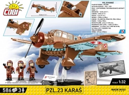 PZL.23 Karaś je bil eno glavnih bombniških letal poljskega letalstva med septembrsko kampanjo leta 1939. Zasnovan v Poljskih letalskih obratih (PZL), je bil v uporabo uveden leta 1936 in je prinašal napredne tehnologije tistega časa. Model te zgodovinske legende, podrobno izdelan iz kock COBI, ponuja verodostojen dizajn s kapaciteto za tri pilotske figurice, tako kot v resničnem letalu.