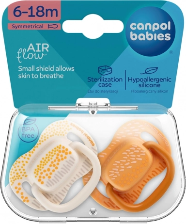 Dudki Canpol babies MOUNTAINS so zasnovani tako, da spoštujejo naravne potrebe otroka. Simetričen cucelj se v ustih zlahka prilagodi ne glede na položaj in podpira pravilen ritem sesanja ter razvoj govora. Izjemno mehek silikon je hipoalergen, brez okusa in vonja, zato ga dojenčki zlahka sprejmejo.