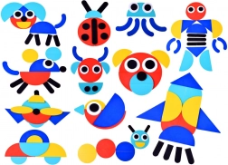 Otroci lahko sestavljajo desetine simpatičnih motivov po priloženih predlogah ali si izmišljajo lastne vzorce. Učenje poteka na igriv način in brez dolgčasa.