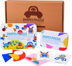 Kreativna lesena montessori sestavljanka tangram razvija logično mišljenje, fino motoriko in domišljijo otrok. S pomočjo 36 lesenih koščkov lahko otroci sestavljajo slike po 60 vzorčnih karticah ali ustvarjajo lastne oblike. Angleški napisi na karticah dodatno podpirajo učenje angleščine skozi igro. Praktični 2 barvni pločevinki olajšata shranjevanje in prenašanje.