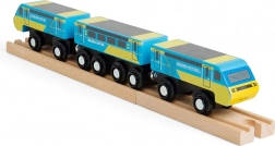 Leseni vlak Intercity 125, pogosto imenovan HST (High Speed Train), otrokom prinaša košček britanske železniške ikone naravnost v njihovo sobo. Natančno izdelani detajli, robustna lesena izvedba in gladke vozne lastnosti zagotavljajo ure domiselne zabave. Garnitura vsebuje tri vagone z magnetnimi sklopkami in dva ravna kosa tirov za takojšen odhod na progo.