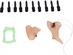 V paketu najdete vse, kar potrebujete za izrazit in zabaven kostum: od ikoničnega čarovniškega klobuka do nosa in brade z elastiko, ki ju dopolnijo podrobni prsti z dolgimi nohti ter strašljivi zobje. Rezultat je učinkovit videz, ki pritegne na prvi pogled.