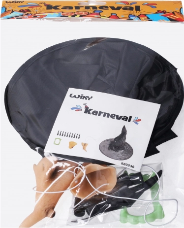 Kompleten čarovniški set za vsako zabavo, pustni karneval in noč čarovnic. Vsebuje velik klobuk, brado in nos z elastiko, 10 natakljivih prstov z nohti in zobe, zato lahko v nekaj minutah ustvarite avtentičen čarovniški videz.
