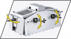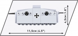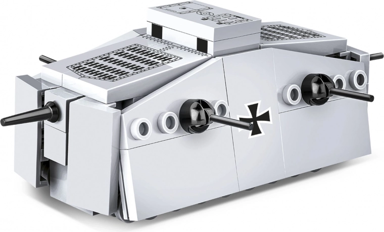 Sturmpanzerwagen A7V je bil prvi nemški tank, uporabljen ob koncu prve svetovne vojne. Ta ikonično oklepno vozilo s posadko do 18 vojakov je nosilo 57-mm top Nordfeld in šest mitraljezov MG 08. Model COBI v merilu 1:72, dolg približno 11,5 cm, ohranja tipične značilnosti izvirnika in navduši s preciznimi potiski križev, mrežic in loput.