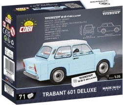 Sestavite kultni avtomobil iz NDR! Ta komplet COBI zvesto upodablja TRABANT 601 Deluxe v merilu 1:35 iz 71 kvalitetnih delčkov. Ponuja vrtljiva kolesa s pnevmatikami, nov svetlo moder odtenek, podoben originalu, ter trpežne potiske namesto nalepk za dolgotrajen videz tudi pri intenzivni igri.