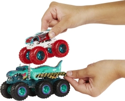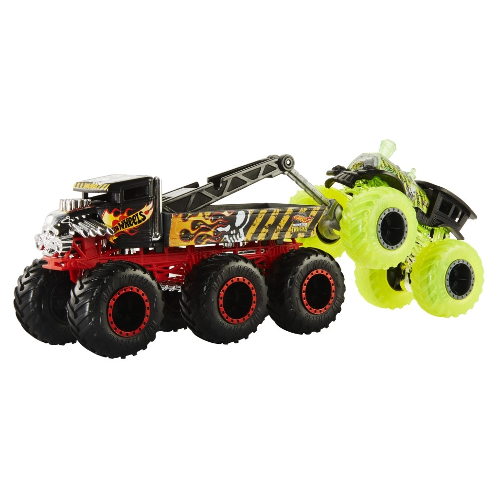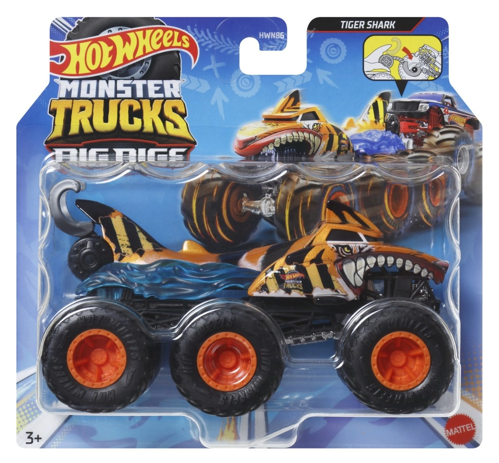 Pripravi se na mogočno vožnjo! Šestkolesni vlačilec HOT WHEELS MONSTER TRUCKS Big Rigs je robusten partner za vse dirke in reševalne akcije. Zaradi 6 koles ima odlično stabilnost in se gladko vali po preprogi ali improvizirani areni, medtem ko izrazite poslikave in kovinska karoserija dajejo modelu verodostojen videz.