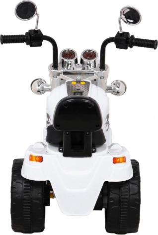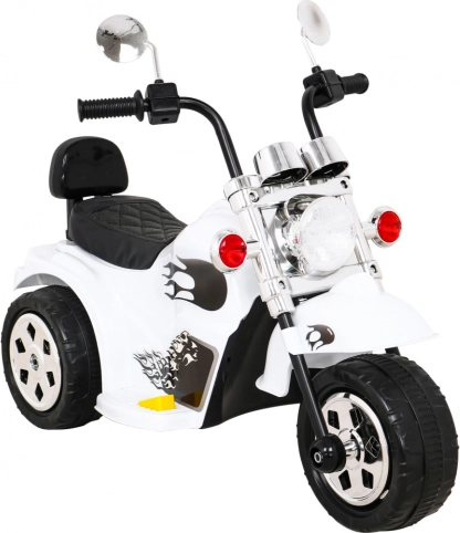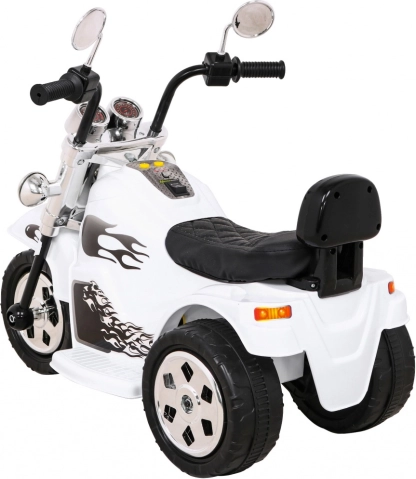 Stilni otroški motor Hot Chopper v beli barvi otrokom zagotavlja varno vožnjo zahvaljujoč trem kolesom, enostavnemu upravljanju in pogonu 25 W. Ponuja sprednje luči, melodije za zabavo in stabilno konstrukcijo z nosilnostjo do 25 kg.