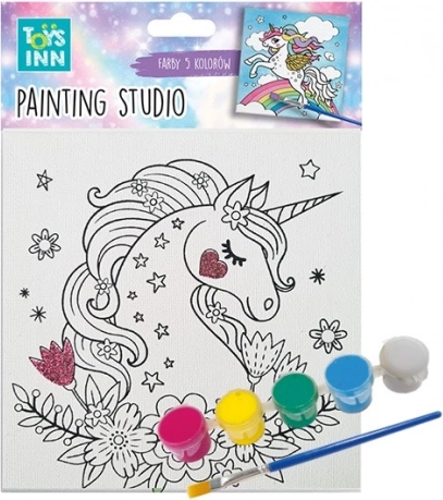 Odkrijte veselje ustvarjanja s slikarskim setom z motivom samoroga. Vsebuje platno 15 × 15 cm, čopič in 5 barv (bela, rumena, rožnata, modra, zelena) – idealno za otroke in začetnike. Enostavno slikanje, razvoj kreativnosti in zabava v prostem času v enem setu.