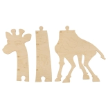 Posamezni deli natančno sodijo skupaj in po sestavi tvorijo stabilno žirafo, pripravljeno za pritrditev na steno.