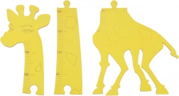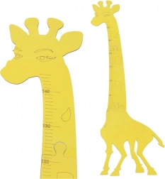 Rumena žirafa z izrazitimi oznakami višine doda sobi barve in motivira otroke k rednemu merjenju.