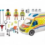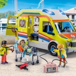 Reševalno vozilo hitro prispe na kraj nesreče in nudi pomoč poškodovanemu delavcu na gradbišču. Visokokakovostna igrača, idealna za otroke od 4. leta dalje, jim omogoča, da se vživijo v vlogo reševalca. Paket vsebuje tri figure PLAYMOBIL, reševalno vozilo, nosila, defibrilator, infuzijsko vrečko in drugo medicinsko opremo za razburljive reševalne misije.