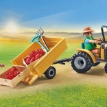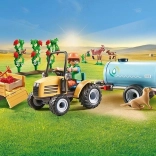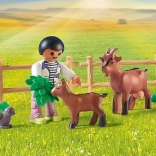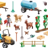 Komplet vsebuje: dve figurici Playmobil, psa, dve kozi, traktor s prikolico, cisterno za vodo ter številne druge dodatke, ki prinašajo več realizma zgodbam.