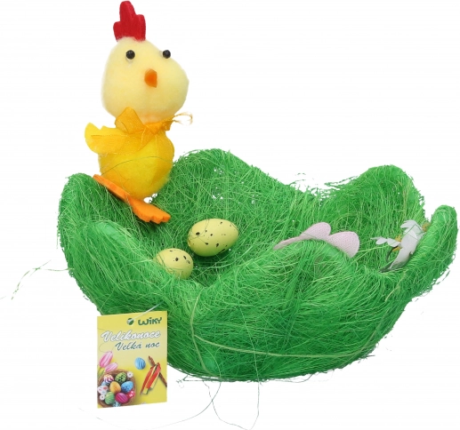 Stilsko dekorativno gnezdo v naravni zeleni barvi z merami 19 × 19 × 8 cm je idealno za spomladanske in velikonočne aranžmaje, poročne dekoracije ter celoletno okrasitev. Interierju doda naraven videz, ponuja univerzalno uporabo in je zaradi kompaktnih mer primerno za mizo, polico ali vitrino.