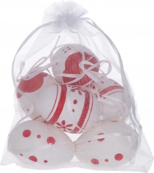 Dekorativna pobarvana plastična jajčka velikosti 6 cm so idealna za vaše praznične dekoracije. Prejmete 6 kosov v elegantni organza vrečki.