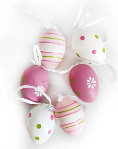 Ta dekorativna plastična jajca so idealna izbira za okrasitev vašega doma med velikonočnimi prazniki ali drugimi priložnostmi. V vsakem paketu boste našli 6 pobarvanih jajc, ki bodo vašemu notranjosti dodala vesele barve in čar.