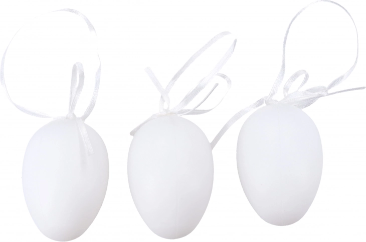 Elegantna dekorativna plastična jajca v beli barvi, idealna za obešanje in okrasitev vašega notranjega prostora.