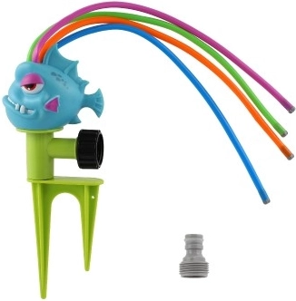 Igrivi vodni razpršilnik v obliki ribe spremeni vroče dni v zabavo. Po priklopu na klasično vrtno cev razprši vodo skozi prožne cevčice v vse smeri ter prinaša osvežitev otrokom in vrtu.