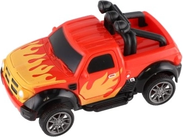 Robustno plastično ohišje, izraziti plameni in podrobna obdelava koles ter okvirja. Idealno za vsakodnevno igro in male dirkače.