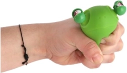 Ob stisku živalice se komično izbočijo oči – takojšen smeh in sprostitev napetosti ob vsakem pritisku.