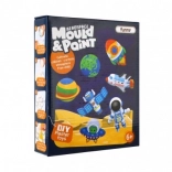 - Plastični kalupi z vesoljskimi motivi, mavec, set barv, čopič, magneti (odvisno od pakiranja)