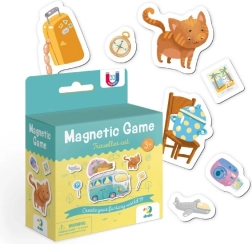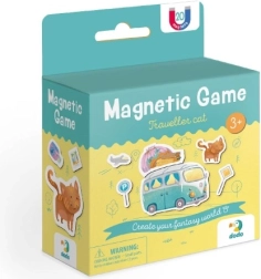 Ta prikupen magnetni komplet z motivom mačke in potovanja otrokom prinaša ure zabave. Z 20 trdnimi magneti lahko mali raziskovalci sestavljajo svoje prizore – od izleta z minibusem do raziskovanja svetilnika. Magnetki odlično držijo na hladilniku, magnetni tabli in drugih kovinskih površinah.