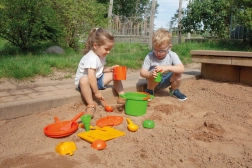 Lahki in barviti deli za zajemanje, prelivanje in oblikovanje peska. Spodbuja skupinsko igro in ustvarjalnost otrok.