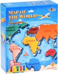 Ta umetniški komplet je idealen za otroke, ki obožujejo likovne aktivnosti. Razvija ročne spretnosti, domišljijo in ustvarjalnost. Komplet omogoča ne le izdelavo oblik celin, temveč tudi učenje njihovih imen v angleščini ter s tem širjenje geografskega znanja.