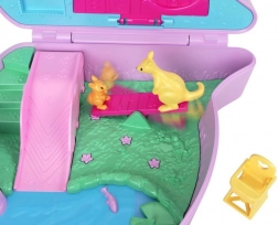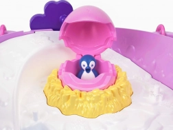 Spodnji del seta je pravi zabaviščni park: otroci bodo vzljubili tobogan v vodno ploskev, gugalnico in skrivnostno jajčko, iz katerega “pokuka” prikupen pingvinček. Mali kenguru dodatno skriva drugi mini prostor za še več igre. V paketu so mini punčki, živalice in veliko dodatkov za nego ter hranjenje.