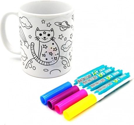 Ta keramična skodelica za barvanje prinaša kreativno zabavo za vaše otroke. Priloženi so štirje raznobarvni flomastri.