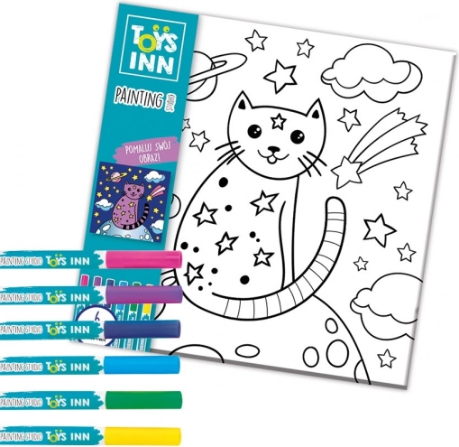 Ta ustvarjalni komplet spodbuja fino motoriko, zbranost in domišljijo. Zaradi trdnega platna na lesenem okvirju je slika po barvanju pripravljena za razstavljanje – le postavite jo ali obesite v otroško sobo. Flomastri imajo intenzivne barve in so enostavni za uporabo, zato je barvanje zabavno in brez nepotrebnega nereda.