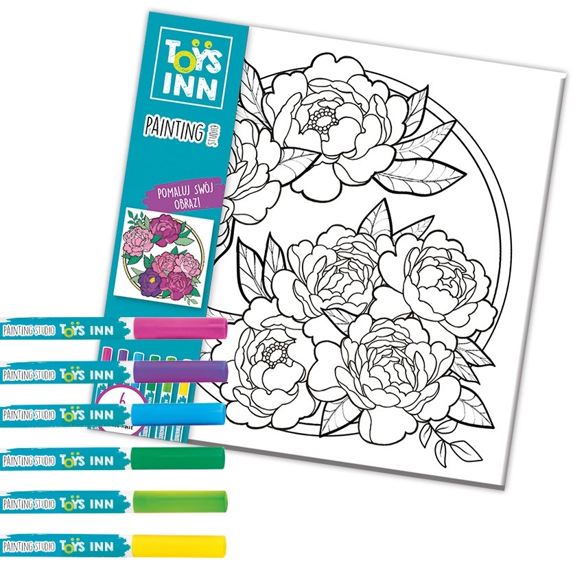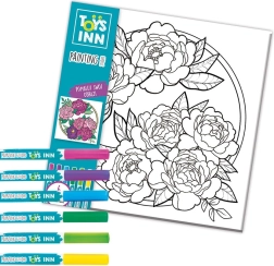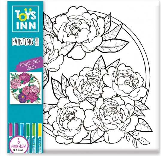 Odkrijte zabaven ustvarjalni set za otroke – slika za barvanje s flomastri na platnu 29 × 29 cm. Z 6 barvnimi flomastri bo vaš otrok ustvaril izviren in barvit cvetlični motiv, ob tem pa razvijal fino motoriko, ustvarjalnost in potrpežljivost.
