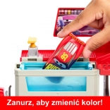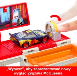 V kompletu Figurina – Mobilni slikar z menjavo barv lahko spreminjate videz svojih najljubših dirkačev iz sveta filma Avtomobili Disney Pixar. Ta transporter vam omogoča, da postanete kralj cest v velikem slogu. V paketu sta Strela McQueen in snemljivi Manny z menjavo barv, zato se zabava z barvnimi preobrazbami lahko začne takoj po odprtju. Zagrabi "barvo" v spreju in razprši vodni blisk na Mannyja, da vidiš, kako menja barvo. Potopi Strelo McQueena v katero koli od dveh posod ali ga popršI z "barvo" in se nato z dvigalom zapelji v drugo nadstropje, da se nova "barva" posuši. Zahvaljujoč pristnim filmskim podrobnostim in domiselni temi lakirnice na kolesih se lahko zabava s tem kompletom nikoli ne konča. In zaradi prelivalnega rezervoarja v spodnjem delu nosilca še nikoli ni bilo čiščenje tako preprosto. Otroci in oboževalci filma »Avtomobili« od 4. leta dalje se lahko igrajo ves dan ter zbirajo dodatna vozila in sete z menjavo barv ter tako širijo svoj igralni svet. Prodaja se ločeno, glede na razpoložljivost. Barve in dekorativni elementi se lahko razlikujejo.