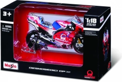 Ta podrobno izdelan model dirkalnega motorja DUCATI PRAMAC temelji na stroju DESMOSEDICI GP. V merilu 1:18 izstopa z verodostojno aerodinamiko, realističnimi kolesi in kakovostnim lakiranjem v ikonični kombinaciji rdeče, modre in bele barve. Odličen za zbiratelje, ljubitelje MotoGP in kot stilska dekoracija.