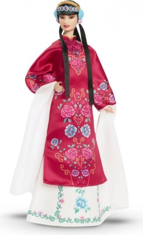 Ta izjemna zbirateljska punčka BARBIE je poklon bogati kulturni dediščini Kitajske. Sij rdeče barve, ki simbolizira srečo in blaginjo, se prepleta z nežnimi cvetličnimi detajli potonike – cveta obilja. Navdih Pekinške opere je viden na obleki, naglavnem okrasu in dodatkih, ki delujejo slovesno in plemenito.