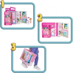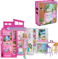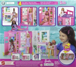 Ta barvita, enostavno zložljiva hiška za BARBIE spremeni vsak dan v pustolovščino. Otroci bodo vzljubili premišljene podrobnosti, kot so izvlečna mizica v kuhinji, prijetna spalnica v nadstropju in kotiček za filmske večere s prijatelji.