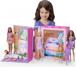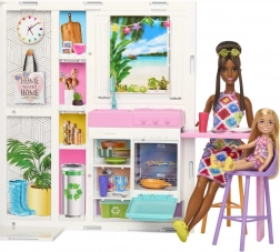 V kompletu sta punčka BARBIE in 11 stilskih dodatkov – posoda, 2 stolčka, brisačka in odejica – ki polepšajo notranjost in prinesejo v igro nove ideje. Grafični motivi, na primer ločevanje odpadkov, rastline, sončni paneli na strehi ali električni avto, otroke na nevsiljiv način učijo o ekologiji.