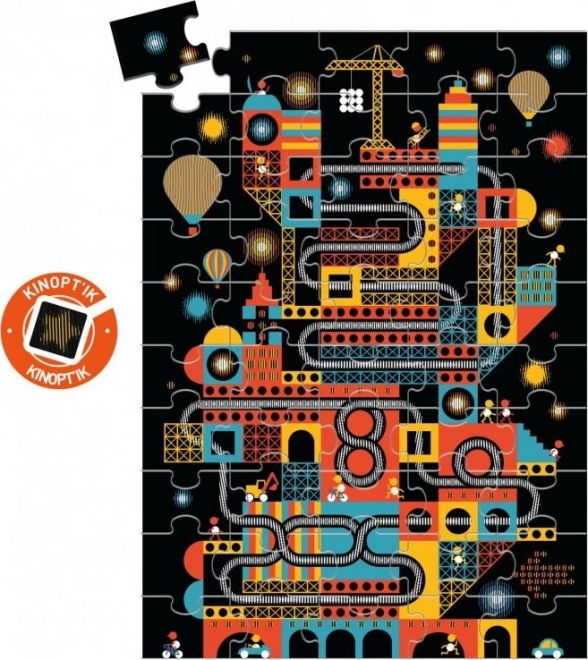 Magnetne sestavljanke Kinoptik temeljijo na optični prevari. Vsaka slika ima vrsto črt, ki ob premikanju priložene črne plastike ustvarjajo vtis gibanja.