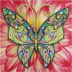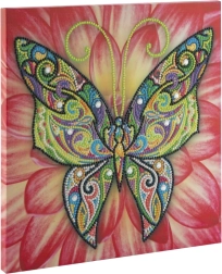 Diamantno slikanje prinaša pomirjujoče ustvarjanje z osupljivim rezultatom. S pomočjo aplikacijskega peresa in voska nanašate kamenček za kamenčkom na označena mesta na platnu z jasno legendo. Platno je že napeto na lesenem okvirju, zato je končno sliko z motivom metulja dovolj le razstaviti ali obesiti.