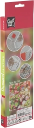 Kako postopati: zgornjo plast zaščitne folije odstranjujte vedno le z dela, ki ga ravno izpolnjujete. Zajemite v konico peresa malo voska, stresite kamenčke v posodico in jih polagajte na označena mesta po legendi. Po dokončanju barve kamenčke vrnite v vrečko in nadaljujte z naslednjo barvo. Opomba: okvir ni priložen.