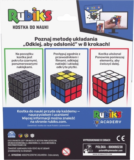 Ste vedno želeli rešiti Rubikovo kocko, pa ne veste, kje začeti? Rubik’s: Training Cube je poenostavljen način, kako se naučiti sestaviti Rubikovo kocko. Rešujte hitreje s pomočjo nalepk. Metoda »odlepi in razkrij« je najlažji način, da se naučite sestaviti Rubikovo kocko 3x3. Zlasti 8-korakna metoda »peel to reveal« vam nudi podporo pri reševanju z vključenim vodnikom korak za korakom in videi. Pri tej metodi je kocka sprva prelepljena s črnimi oštevilčenimi nalepkami. Sledite vodniku in videom, odstranjujte nalepke ter rešujte razkrite koščke. Hitro boste imeli sestavljeno celotno kocko. Naključno odlepite stranice in vajo ponovite. Zdaj imate običajno Rubikovo kocko 3x3, s katero se lahko igrate neskončno. Odlepljanje nalepk in nato postopno reševanje razkrite skupine koščkov pomeni preprostejše učenje in manj motenj. Vodnik in video lekcije so zasnovani tako, da se dopolnjujejo in zagotavljajo najboljšo možno raven učenja. Rubik’s: Trening kocka je primerna za vsakogar, vključno z učitelji, učenci, hobisti in vsemi od 8 let naprej. Obiščite stran coach.rubiks.com za nasvete, kako rešiti Rubikovo kocko. Podjetje Spin Master ponuja domačo zabavo z vrsto igrač in iger za otroke, vključno z igračami za malčke, igračami za deklice in namiznimi igrami. Zbirajte priljubljene plišaste medvedke, fidget igrače, RC-avtomobile, figurice, punčke, dodatke in še več. Od edinstvenih daril za moške do igrač za dojenčke, otroke in vse, ki so po srcu otroci – z našim obsežnim katalogom si olajšajte izbiro rojstnodnevnih daril. Če želite še več, odkrijte otroške igre, igrače za bazen, zunanje igre in monster trucke za vse letne čase. Razveselite se s kreativnostjo z ustvarjalnimi pripomočki, gradbenimi igračami in daljinsko vodenimi avtomobilčki ter prenesite akcijo na mizo z miselnimi ugankami za odrasle ali s kartnimi igrami. Še danes zavihajte rokave na peskovniku z igrami Spin Master.