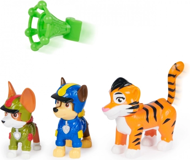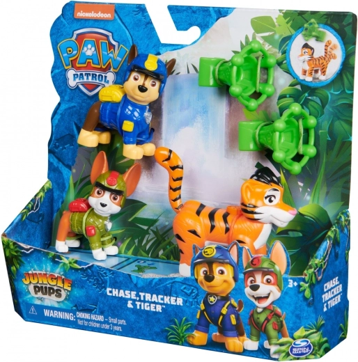 Ustvari lastne pustolovščine s Chasom, Sledilcem in njunim prijateljem tigrom. Chase, Tracker in tiger so visoki več kot 5 cm in izgledajo natanko tako kot v televizijski seriji. Ko pride čas za napeto reševalno akcijo, pritrdite mrežasto izstreljevalno kroglo na tigrov rep, potegnite rep čim dlje nazaj, nato pa s pritiskom na gumb izstrelite in rešite situacijo. Uporabite svojo domišljijo in poustvarite najljubše epizode serije Tačke na patrulji: Patrulja v džungli ali ustvarjajte povsem nove misije. Za še več zabave in razburljivih misij, navdihnjenih s serijo Tačke na patrulji, zberite vse igrače iz filma Tačke na patrulji: Patrulja v džungli in Tačke na patrulji: Veliki film, kot je osupljivi poveljniški zračni ladijski modul, pa tudi vse posebne igrače Tačke na patrulji za deklice in dečke, kot so figurice in kompleti Veliki mladički, Vodna patrulja in Veliki tovornjak (vsaka se prodaja ločeno). Z igračami Tačke na patrulji za predšolske otroke lahko otroci skozi igro raziskujejo svojo domišljijo, razvijajo motorične spretnosti in znova doživljajo svoje najljubše prizore iz serije. Uživajte v neskončnih pustolovščinah s setom figuric Chase, Tracker in Tiger iz serije Patrulja v džungli.
