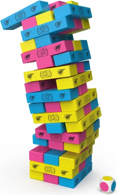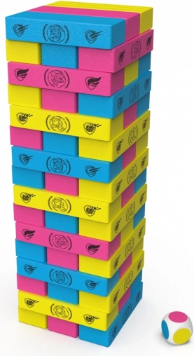 Vrzi kocko in določi, kateri barvni blok boš odstranil iz stolpa. Igralci izmenično odstranjujejo 1 blok vržene barve, dokler eden od igralcev ne povzroči, da se stolp podre.